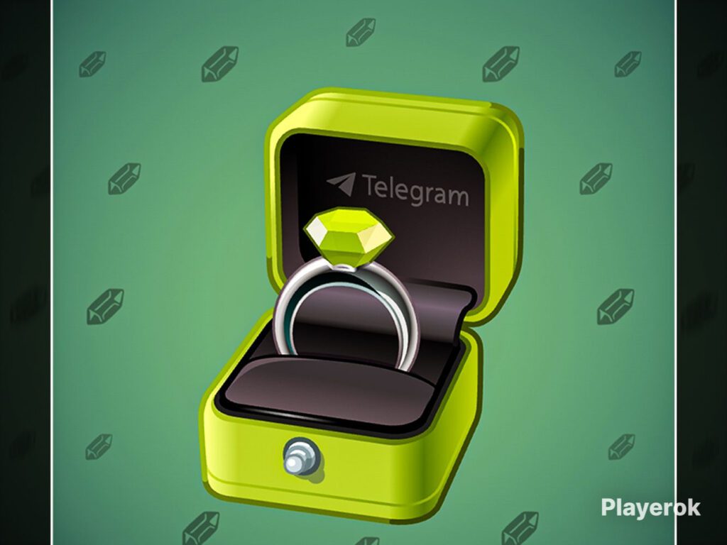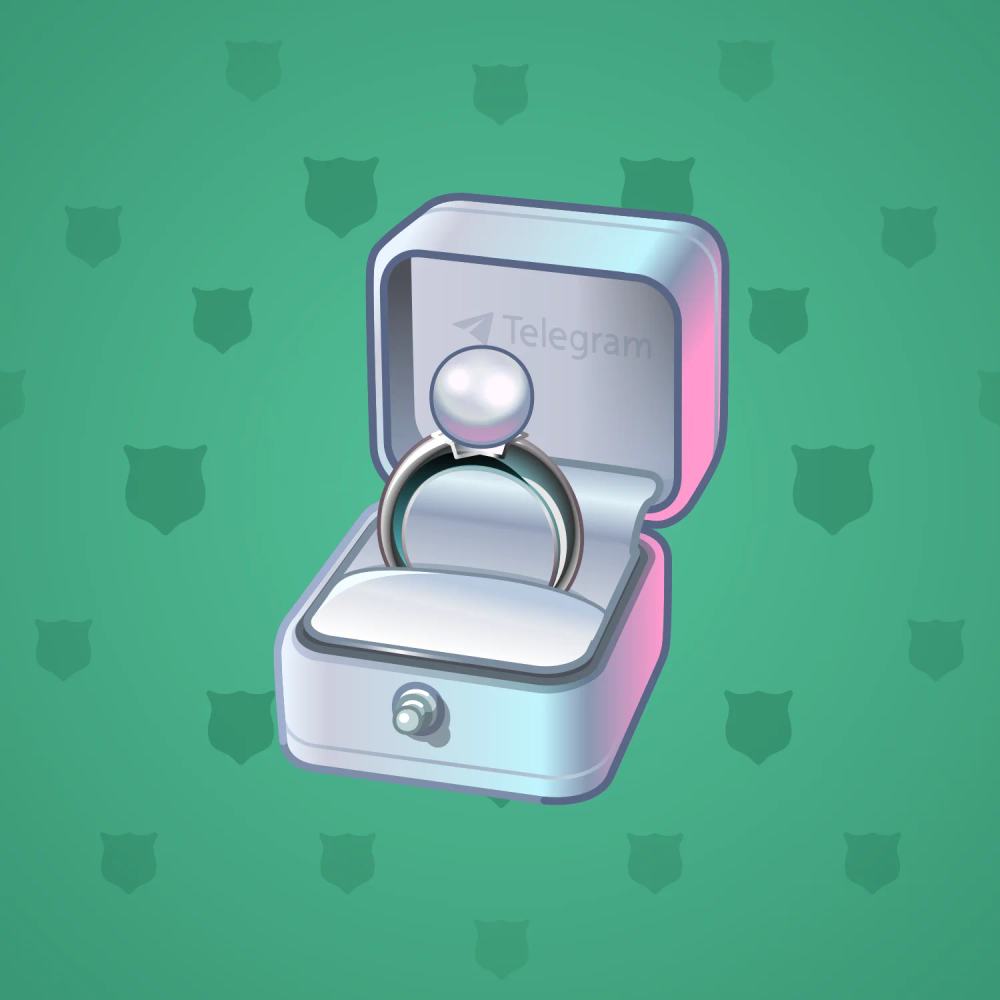 Свадебная тематика с романтическим подтекстом. Бриллиант сияет реалистичными бликами. Часто дарят при предложениях руки и сердца в Telegram. Символ серьезных отношений в цифровую эпоху.
