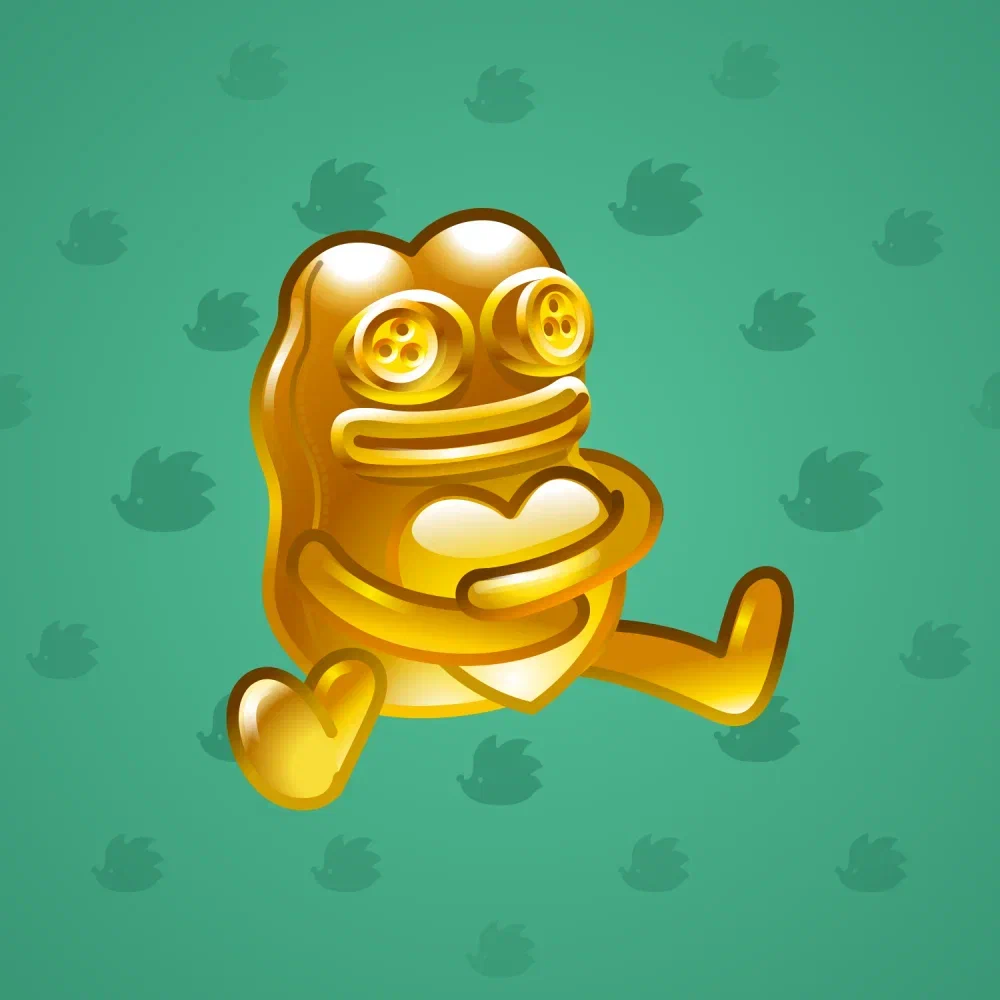 Премиум-версия культового мема. Изначально стоил несколько долларов, вырос до $6,500 на пике. Сейчас стабилизировался около $300. Золотое покрытие добавляет роскоши классическому образу.