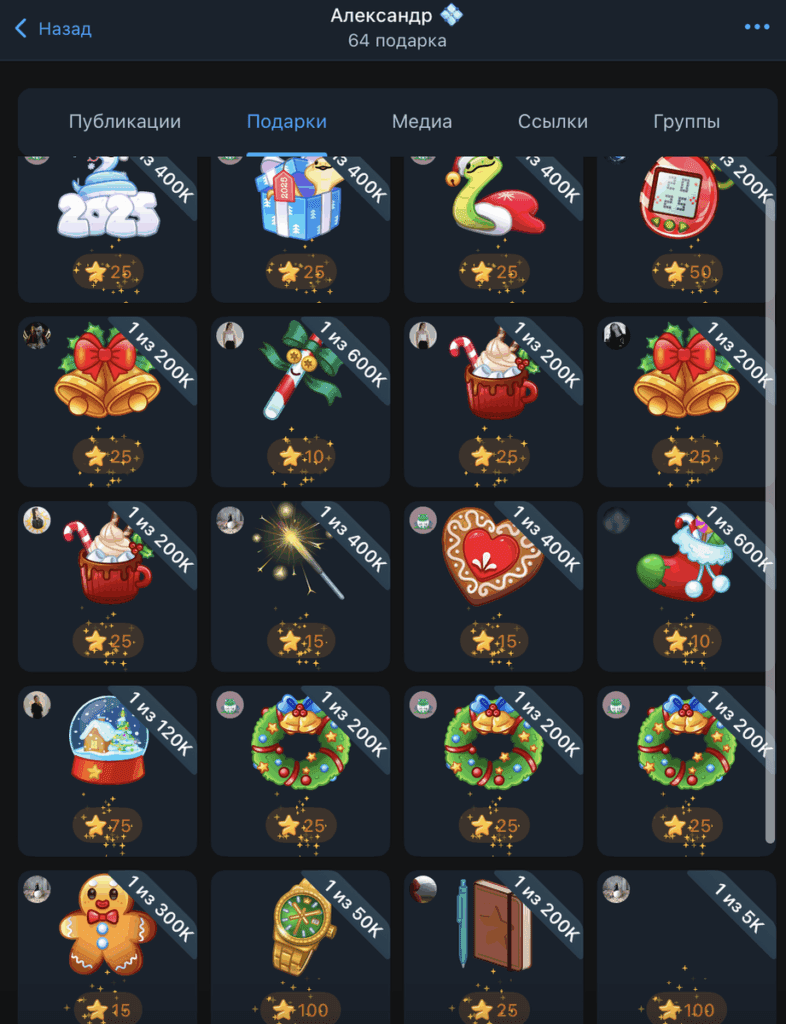 - Возможность апгрейда обычного подарка до НФТ-статуса за Stars.