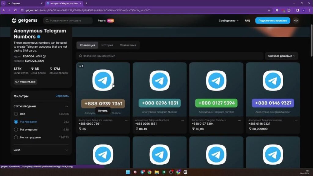 Исторически на Fragment были сделки на сотни тысяч TON. Например, ник «casino» ушёл за более чем 52 тысячи TON. Но не думайте, что любое короткое имя автоматически стоит бешеные деньги — рынок непредсказуем.