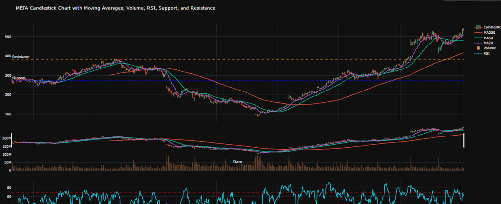 MA, RSI, уровни S/R на графике