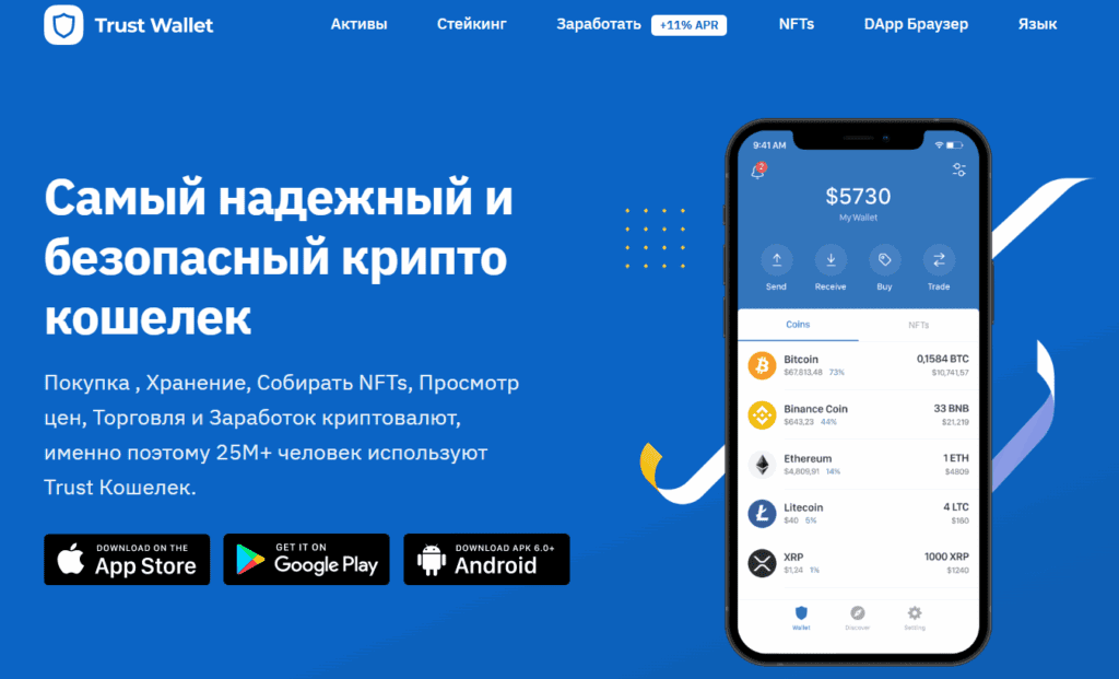 Trust Wallet – это децентрализованный мобильный кошелек для криптовалют, позволяющий пользователям хранить, отправлять, получать и обменивать цифровые активы. Этот кошелек нацелен на то, чтобы дать полную свободу управления активами, сохраняя их безопасность.