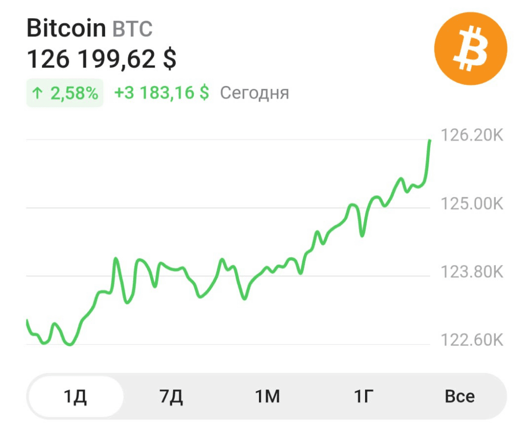 Π‘Π΅Π³ΠΎΠ΄Π½Ρ ΡΡΡΠΎΠΌ ΡΠ΅Π½Π° Π±ΠΈΡΠΊΠΎΠΈΠ½Π° (BTC) ΠΎΡΠΈΡΠΈΠ°Π»ΡΠ½ΠΎ ΠΏΡΠ΅Π²ΡΡΠΈΠ»Π° ΠΈΡΡΠΎΡΠΈΡΠ΅ΡΠΊΠΈΠΉ ΠΌΠ°ΠΊΡΠΈΠΌΡΠΌ β ΠΎΡΠΌΠ΅ΡΠΊΡ $126 000, ΠΏΠΎΠ±ΠΈΠ² ΠΏΡΠ΅ΠΆΠ½ΠΈΠΉ ΡΠ΅ΠΊΠΎΡΠ΄, ΡΡΡΠ°Π½ΠΎΠ²Π»Π΅Π½Π½ΡΠΉ Π² ΠΊΠΎΠ½ΡΠ΅ 2021 Π³ΠΎΠ΄Π°. ΠΡΠΎ ΡΠΎΠ±ΡΡΠΈΠ΅ ΡΡΠ°Π»ΠΎ ΠΊΠ»ΡΡΠ΅Π²ΡΠΌ ΠΌΠΎΠΌΠ΅Π½ΡΠΎΠΌ Π΄Π»Ρ Π²ΡΠ΅Π³ΠΎ ΠΊΡΠΈΠΏΡΠΎΡΡΠ½ΠΊΠ° ΠΈ Π·Π½Π°ΠΌΠ΅Π½ΡΠ΅Ρ Π½Π°ΡΠ°Π»ΠΎ Π½ΠΎΠ²ΠΎΠΉ ΡΠ°Π·Ρ Π±ΡΡΡΠ΅Π³ΠΎ ΡΠΈΠΊΠ»Π°, ΠΏΠΎΠ΄ΠΊΡΠ΅ΠΏΠ»ΡΠ½Π½ΠΎΠ³ΠΎ ΠΈΠ½ΡΡΠΈΡΡΡΠΈΠΎΠ½Π°Π»ΡΠ½ΡΠΌ ΡΠΏΡΠΎΡΠΎΠΌ, ΠΏΡΠΈΡΠΎΠΊΠΎΠΌ ΠΊΠ°ΠΏΠΈΡΠ°Π»Π° Π² ETF ΠΈ ΠΎΠΆΠΈΠ΄Π°Π½ΠΈΡΠΌΠΈ ΡΠ½ΠΈΠΆΠ΅Π½ΠΈΡ ΡΡΠ°Π²ΠΎΠΊ Π€Π Π‘.