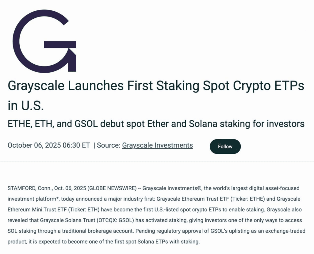 - Grayscale — Launches First U.S. Spot Ethereum and Solana ETFs with Staking Functionality