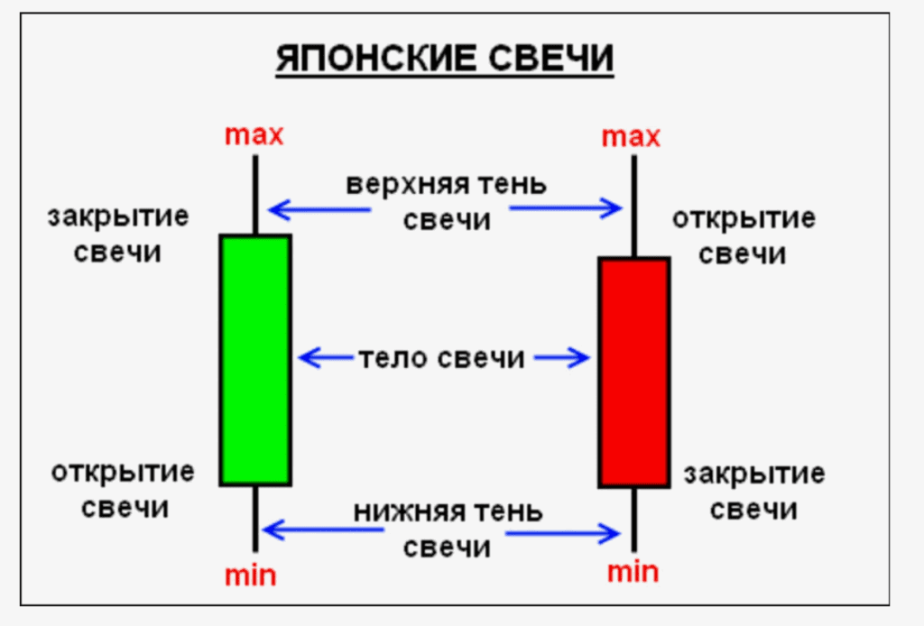 - Цвет тела — направление движения цены от открытия к закрытию.